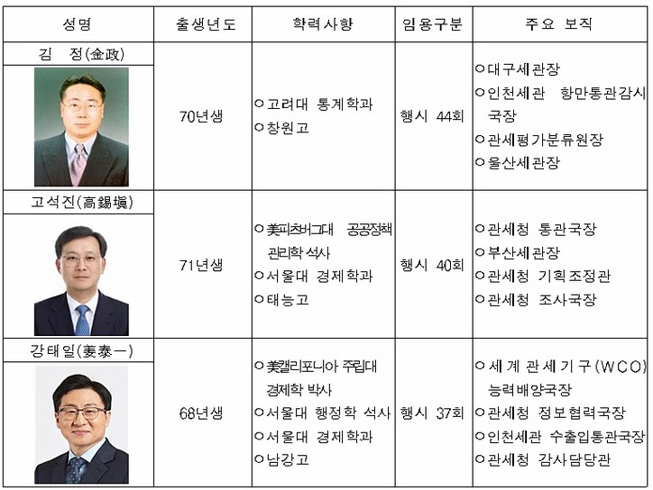 △관세청 통관국장 김 정 (金政)