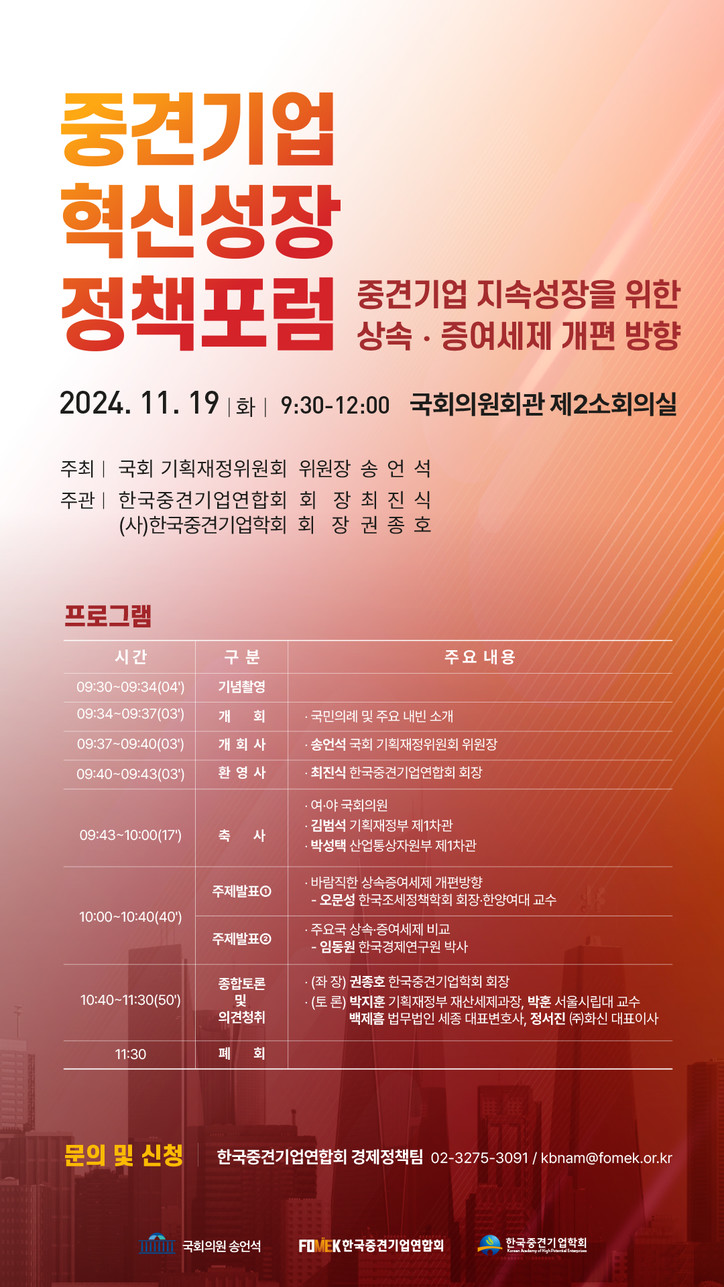 10일 한국중견기업연합회-한국중견기업학회 정책포럼 주관