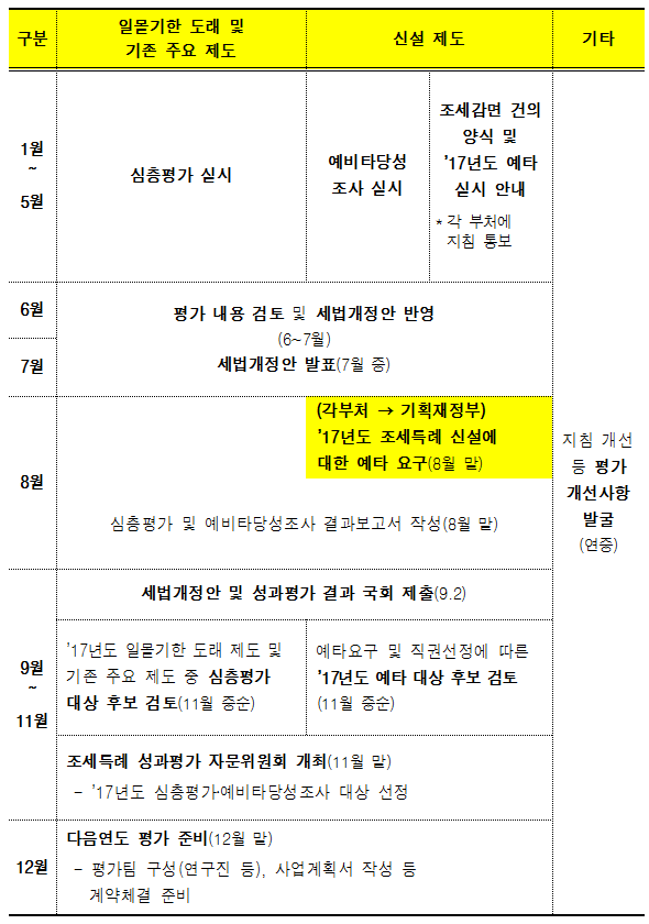 [참고] 조세지출 예비타당성조사(예타)․심층평가 추진일정 세정일보 (sejungilbo) 기자의 다른기사 저작권자 © 세정일보 무단전재 및 재배포 금지 관련기사 정부, 일자리 창출外 조세지출 신설·연장 제한한다 최신 기사 차규근 “배당소득 분리과세율 인하 수용못한다…초부자 감세, 불평등만 심화” 관세사회, 우원식 국회의장 면담…성실신고확인제 필요성 설명 [현장] ‘국세공무원의 꽃’ `25년 하반기 서기관 승진자 30명에 임명장 수여식 국세청, ‘기획·정보·대변인실’ 사무관 자리 하나씩 늘린다 동아쏘시오그룹, 중대재해 대응 모의훈련 실시···심폐소생술·자동심장충격기 실습 NH농협은행, 2025년 ‘디지털금융 혁신대상‘ 최종 우수사례 선정 韓 3분기 경제성장률 26개국 중 3위…내년 2.3% 전망도 등장 차규근 “배당소득 분리과세율 인하 수용못한다…초부자 감세, 불평등만 심화” 추천기사 국세청, 태광산업 세무조사 ‘인프라·레저 계열사’까지…‘5년 치 장부’ 뒤진다 론스타와 13년 분쟁, 국제투자분쟁에서 최초 ‘대한민국 승’…조세주권 지켰다 국세청, 세무공무원 출신 세무사 등 ‘세금 유튜버’ 전수 확인했다 상속세 과세, 유산취득세로 변경 시 ‘국세청 세무조사 조항’도 바뀐다 '마약의 나라' 되나?…청년층 타깃 클럽마약 '케타민의 급습' 5년간 7.3배 급증 [세미콜론] 아직도 이런 폐습이~…국세청 ‘간부 모시는 날’ 고강도 감찰