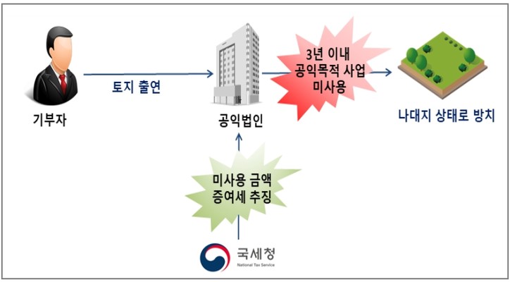 -△△△공익법인은 출연받은 토지가 사업장 인근에 있고, 사용이 어려운 특별한 사정이 없음에도 3년 이상 나대지 상태로 방치함