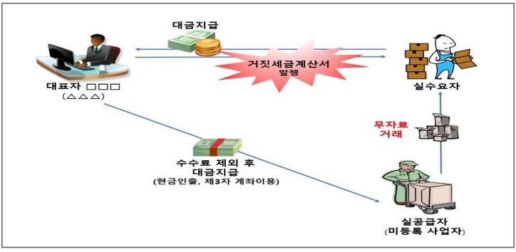 사례: 미등록 사업자의 거래를 위장하기 위해 거짓세금계산서 발행
