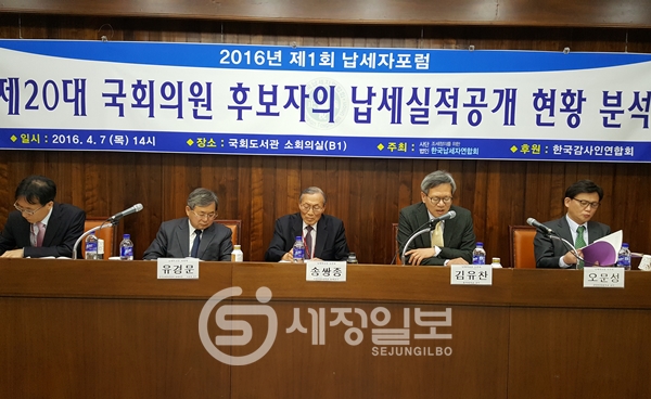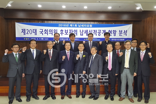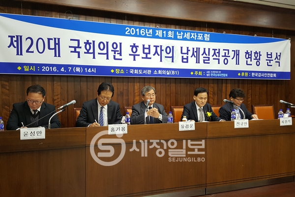 한국납세자연합회(회장 전규안)는 7일 오후 2시 서울 여의도 국회도서관 소회의실에서 ‘국회의원 후보자의 납세실적 공개 현황 분석과 개선방안’이라는 주제로 2016 납세자포럼을 열었다.