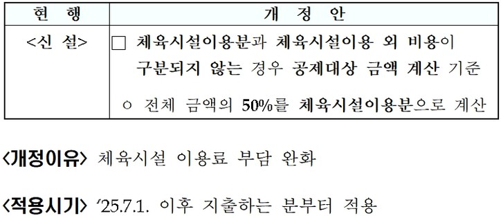 ㅇ 체육시설이용분과 체육시설이용 외 비용이 구분되지 않는 경우 공제대상으로 인정되는 금액에 대해 시행규칙으로 위임