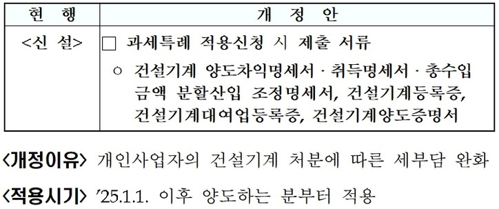 (12) 건설기계 양도차익에 대한 과세특례 관련 제출서류 규정(조특칙 §47의6 신설)