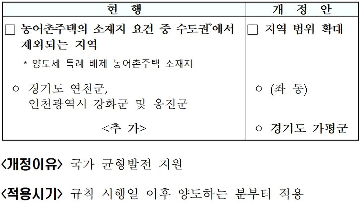 농어촌주택 양도소득세 특례 소재지 요건 예외지역에 ‘경기도 가평군’이 추가된다.