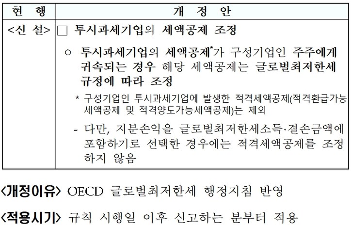 ⑧ 투시과세기업의 세액공제 조정방법(국조칙 별표 4다 신설)