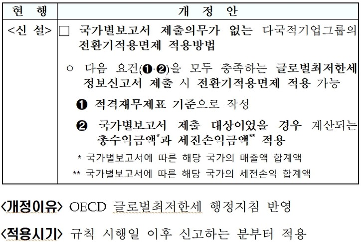 ⑦ 국가별보고서 제출의무가 없는 다국적기업그룹의 전환기 적용면제 적용방법(국조칙 §88(8) 신설)