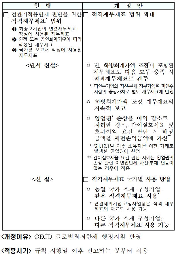 * 글로벌최저한세소득·결손 계산의 기준이 되는 자산·부채 금액