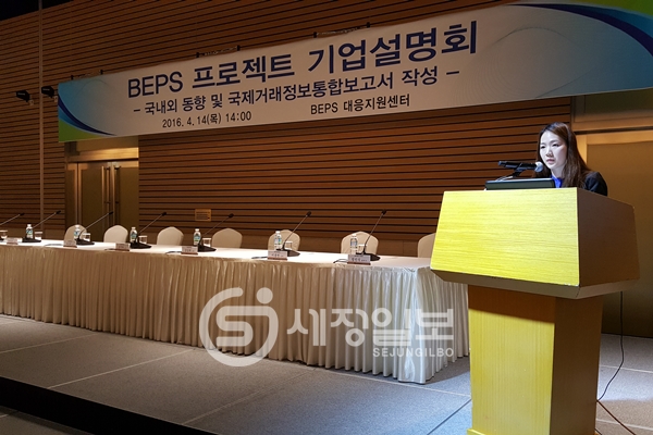 14일 BEPS 대응지원센터(기획재정부·한국조세재정연구원 공동주관)는 서울 여의도 전경련회관 컨퍼런스센터 1층 그랜드볼룸에서 'BEPS 프로젝트 기업설명회‘를 개최하고 기획재정부가 2016년에 새로 도입된 국제거래정보 통합보고서 작성방법을 안내했다.
