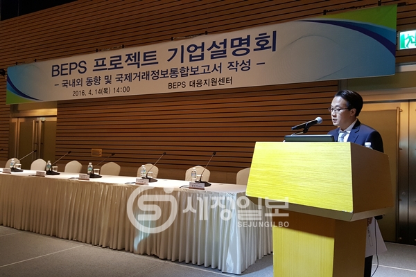 14일 BEPS 대응지원센터(기획재정부·한국조세재정연구원 공동주관)는 서울 여의도 전경련회관 컨퍼런스센터 1층 그랜드볼룸에서 'BEPS 프로젝트 기업설명회‘를 개최하고 조세재정연구원이 BEPS 프로젝트 중 이전가격 문서화 개요 및 주요국 동향에 대해 발표했다.