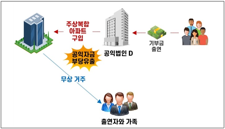 공익자금으로 고급 주상복합 아파트를 구입한 후 출연자와 그 가족이 무상으로 거주