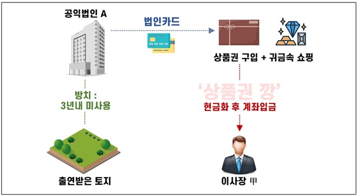 ‘상품권 깡’ 등 이사장의 법인카드 사적사용, 출연재산 3년 내 공익목적 미사용