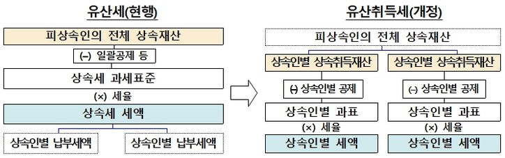 12일 기획재정부가 발표한 ‘유산취득세 도입 방안’에 따르면 상속인이 받은 만큼 세금을 내도록 개편하는 유산취득세로의 전환은 올해 입법예고, 공청회 등을 거쳐 5월 중 국회에 법안을 제출해 오는 `28년 시행을 목표로 하고 있다.