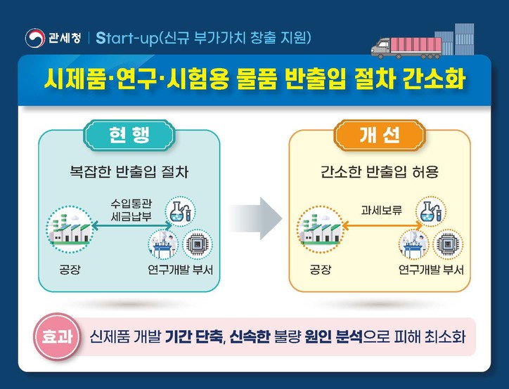 관세청은 신규 부가가치 창출 지원(Start-up)을 위해 보세공장의 연구개발 절차를 간소화할 방침이다.