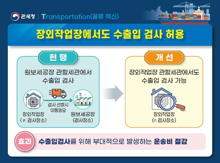또한 불필요한 운송비를 절감하기 위해, 장외작업장에서 생산된 제품은 장외작업장 관할 세관에 수출입 신고하는 방식으로 개선된다.
