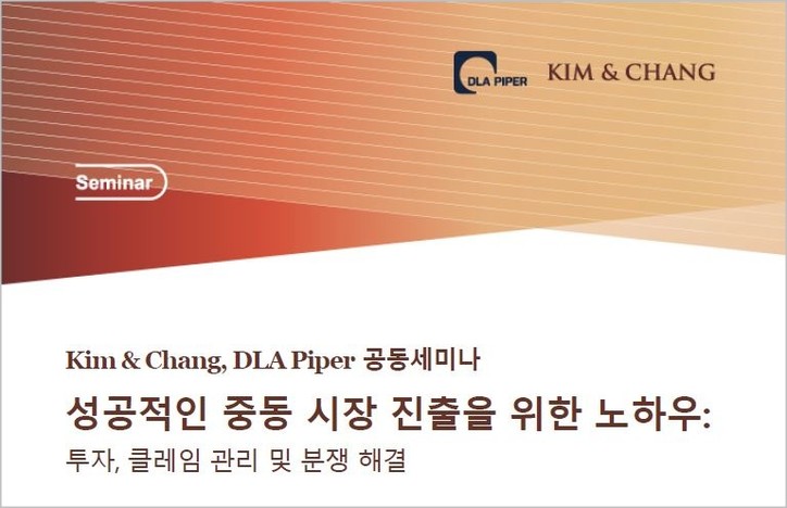 김앤장 법률사무소가 오는 27일 글로벌 로펌 디엘에이파이퍼(DLA Piper)와 함께 ‘성공적인 중동 시장 진출을 위한 노하우: 투자, 클레임 관리 및 분쟁 해결’을 주제로 세미나를 개최한다.