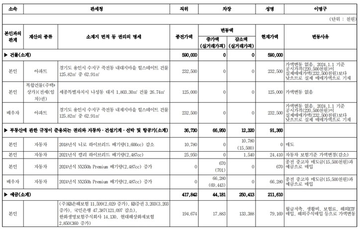 정부공직자윤리위원회는 27일 고위공직자 재산공개대상자의 '2025년 공직자 정기 재산변동사항'을 공직윤리시스템(PETI)과 관보에 공개했다.