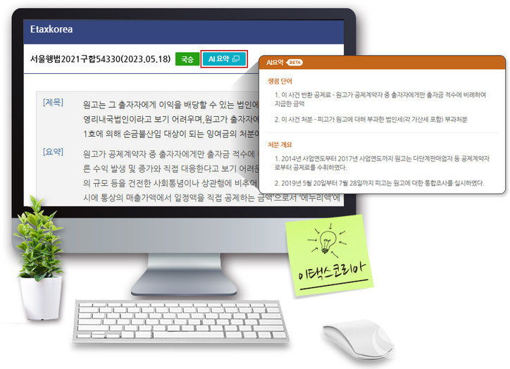또 이번 이택스코리아의 판례요약서비스는 단순히 기계적인 요약이 아니라 요약된 내용을 세무사 등 전문가의 검수를 거쳐 서비스 함에따라 내용의 충실성도 담보했다.