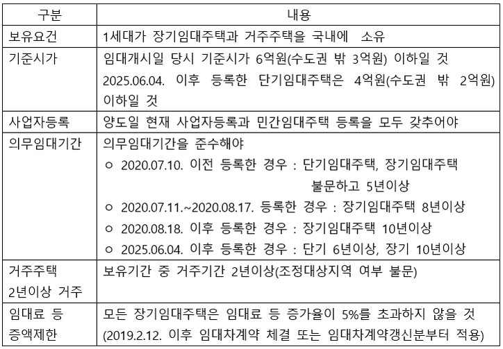 양도일 현재 장기임대주택과 거주주택을 보유한 거주자가 거주주택(2년이상 보유 및 2년이상 거주)을 양도하는 경우 장기임대주택은 주택으로 보지 않고 거주주택을 1세대 1주택으로 보아 양도소득세를 비과세합니다.