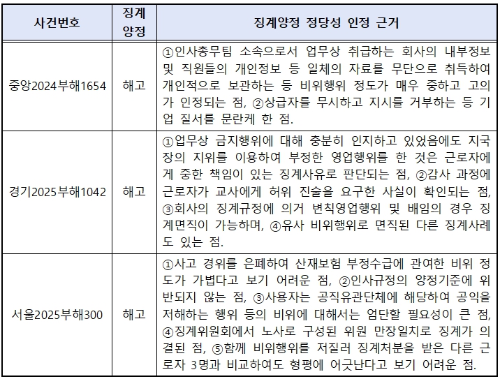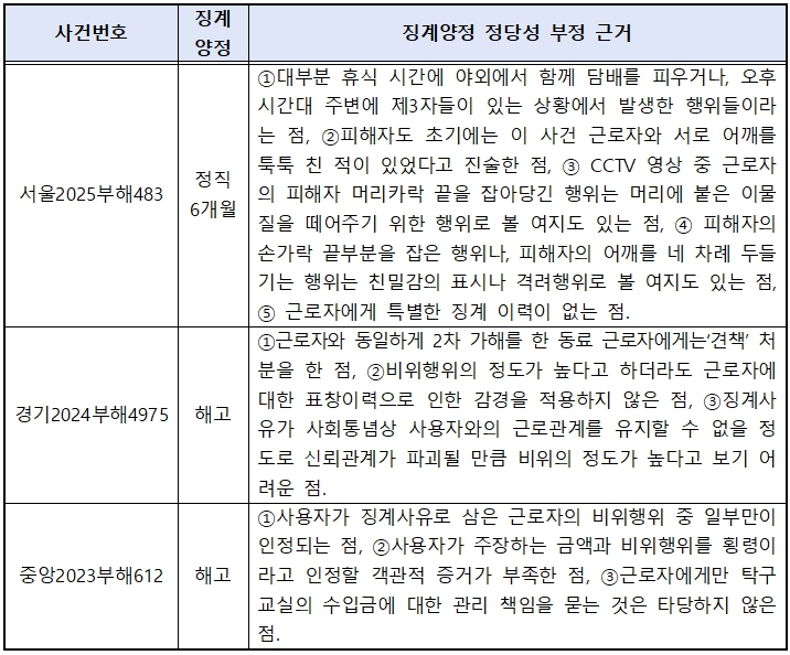 반면, 다음은 징계양정의 정당성이 부정된 Case이다.