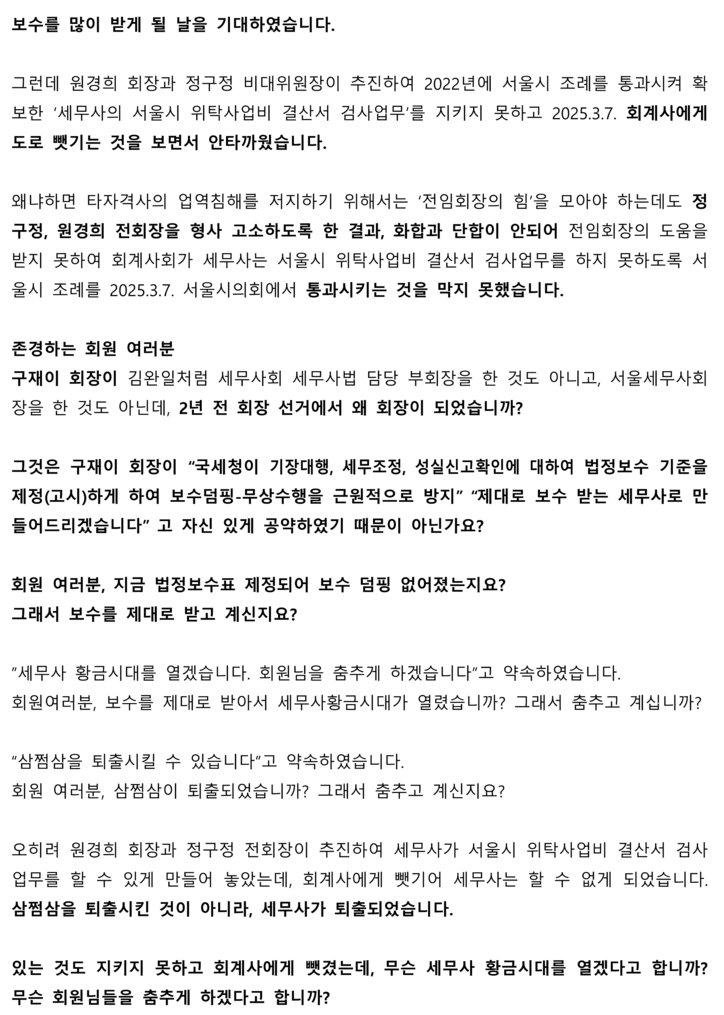 세정일보 sejungilbo@sejungilbo.com 기자의 다른기사 저작권자 © 세정일보 무단전재 및 재배포 금지 관련기사 [`25 세선] 김완일 회장 후보 “선거는 심판…구재이 회장이 못한 것을 하겠다” 최신 기사 차규근 “배당소득 분리과세율 인하 수용못한다…초부자 감세, 불평등만 심화” 관세사회, 우원식 국회의장 면담…성실신고확인제 필요성 설명 [현장] ‘국세공무원의 꽃’ `25년 하반기 서기관 승진자 30명에 임명장 수여식 국세청, ‘기획·정보·대변인실’ 사무관 자리 하나씩 늘린다 동아쏘시오그룹, 중대재해 대응 모의훈련 실시···심폐소생술·자동심장충격기 실습 NH농협은행, 2025년 ‘디지털금융 혁신대상‘ 최종 우수사례 선정 韓 3분기 경제성장률 26개국 중 3위…내년 2.3% 전망도 등장 차규근 “배당소득 분리과세율 인하 수용못한다…초부자 감세, 불평등만 심화” 추천기사 국세청, 태광산업 세무조사 ‘인프라·레저 계열사’까지…‘5년 치 장부’ 뒤진다 론스타와 13년 분쟁, 국제투자분쟁에서 최초 ‘대한민국 승’…조세주권 지켰다 국세청, 세무공무원 출신 세무사 등 ‘세금 유튜버’ 전수 확인했다 상속세 과세, 유산취득세로 변경 시 ‘국세청 세무조사 조항’도 바뀐다 '마약의 나라' 되나?…청년층 타깃 클럽마약 '케타민의 급습' 5년간 7.3배 급증 [세미콜론] 아직도 이런 폐습이~…국세청 ‘간부 모시는 날’ 고강도 감찰