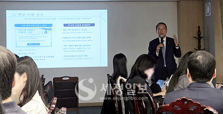 주기적 지정제 유예방안에 대해서는 제도 기본 틀을 유지해 상장기업 `28년까지 최소 1회 지정감사하고, 지배구조 우수기업에 한해 3년 유예를 부여하며, 주요 그룹사 대표기업 신청을 준비하는 내용 등을 설명했다.