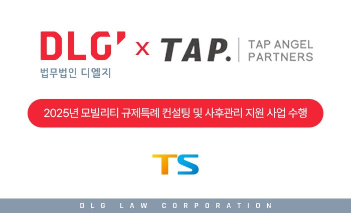 법무법인 디엘지(대표변호사 조원희·안희철)는 경영·기술 전문 컨설팅 기업 탭엔젤파트너스(대표 박재현)와 컨소시엄을 구성해, 한국교통안전공단(TS)이 발주한 ‘2025년 모빌리티 규제특례 컨설팅 및 사후관리 지원 사업’을 공동 수행한다고 25일 밝혔다.