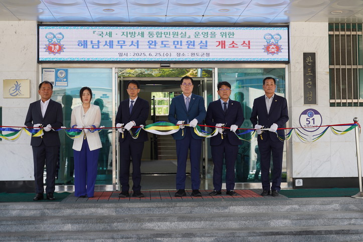 해남세무서(서장 박현주)는 완도군청과 협업으로 25일 해남세무서 완도민원실을 완도군청 이전하며 납세자 서비스 제고에 역점을 두고 있다.