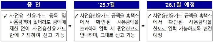 〇(장점)①홈택스에서 등록한 카드사용 내역 조회, ②부가가치세 신고 시 합계액만 기재하면 매입세액공제, ③사용내역이 전산구축되어 신고누락 우려 감소