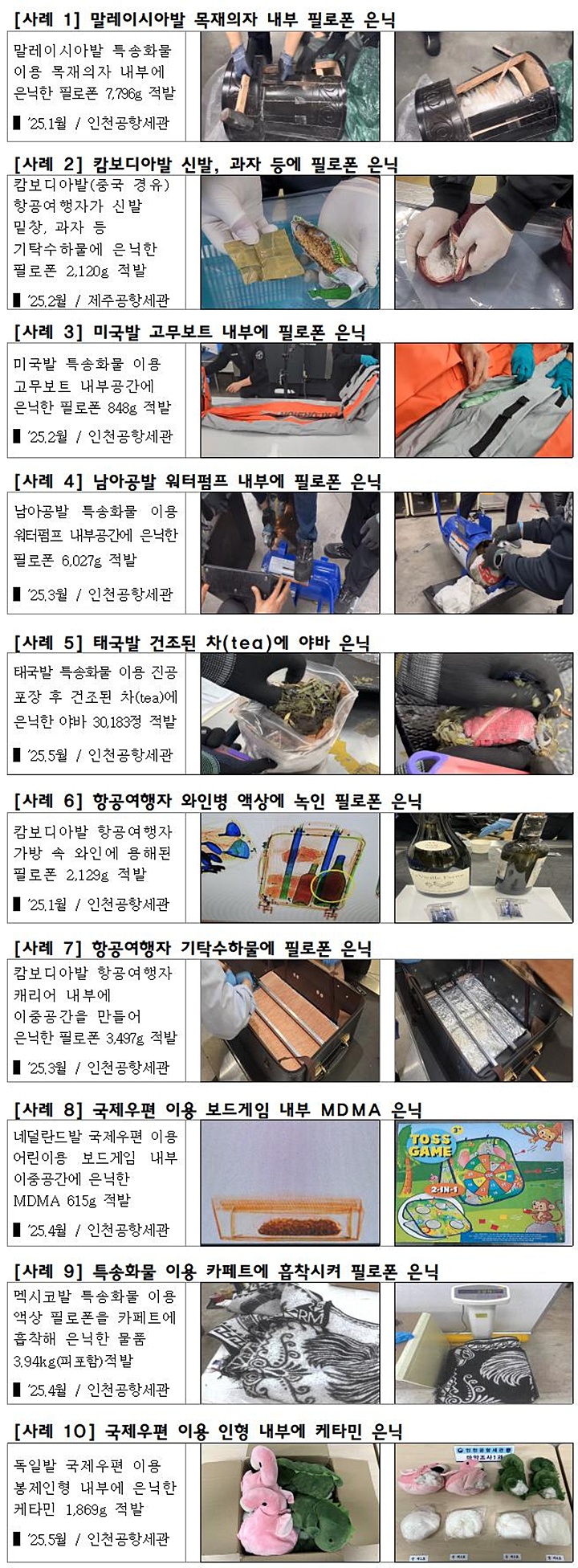 관세청은 `25년 상반기 국경단계에서 총 617건, 2680kg의 마약을 적발했다. 이는 약 8933만명이 동시 투약 가능한 양이다.