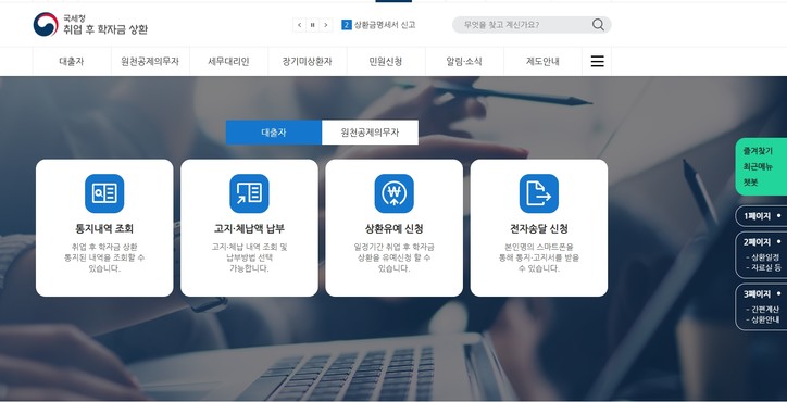 국세청은 대출자의 소득 발생에 따른 의무상환 관리와 장기미상환자의 상환 업무 등을 맡고 있다. 대출자는 `24년 기준으로 연간소득금액이 상환기준소득인 1752만원을 초과하면 의무상환대상자로 분류돼 의무상환액을 납부해야 한다.