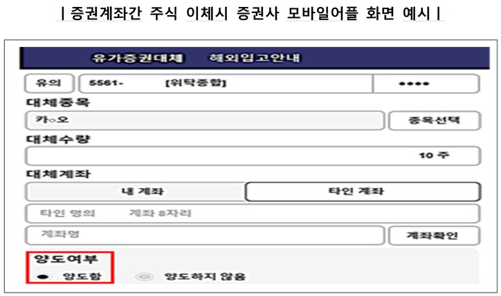 특히 장외거래자는 증권사가 제출한 증권계좌간 이체자료*를 기반으로 안내서비스를 제공하고 있으며, 납세자가 주식 이체시 입력한 이체사유(양도 또는 양도외)를 활용하고 있습니다.
