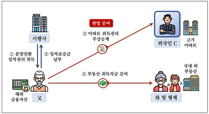 〇소득원이 없는 외국인 C는 국내 거주자인 父가 취득한 분양전환권*을 무상승계 후 본인 명의로 분양전환하여 ○○억 원대 고가 아파트 취득