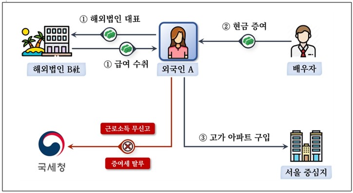 〇③해외법인으로부터 받은 근로소득과 배우자가 증여한 현금으로 서울 중심지 소재 고가 아파트를 ○○억 원에 구입