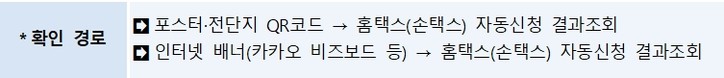 신청대상자에게는 모바일(국민비서) 또는 우편으로 안내문을 발송했으며, 모바일 안내문의 ‘신청하기’ 버튼을 누르거나 자동응답전화(☎1544-9944)로 전화해 개별인증번호를 입력하면 간편하게 신청할 수 있다.