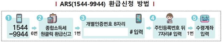 안내문을 받은 납세자는 ☎1544-9944로 전화해 안내문 상의 개별인증번호와 주민등록번호 뒷자리, 환급계좌만 입력하면 신청이 끝난다.