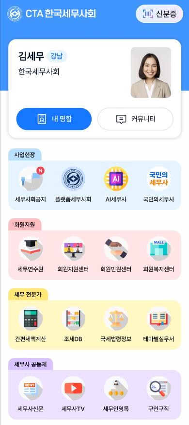 ‘한국세무사회(CTA)’ 앱은 단순히 공지 전달이나 신분증 기능을 넘어, 세무사의 실무를 직접적으로 지원하는 다양한 메뉴도 장착했한다.