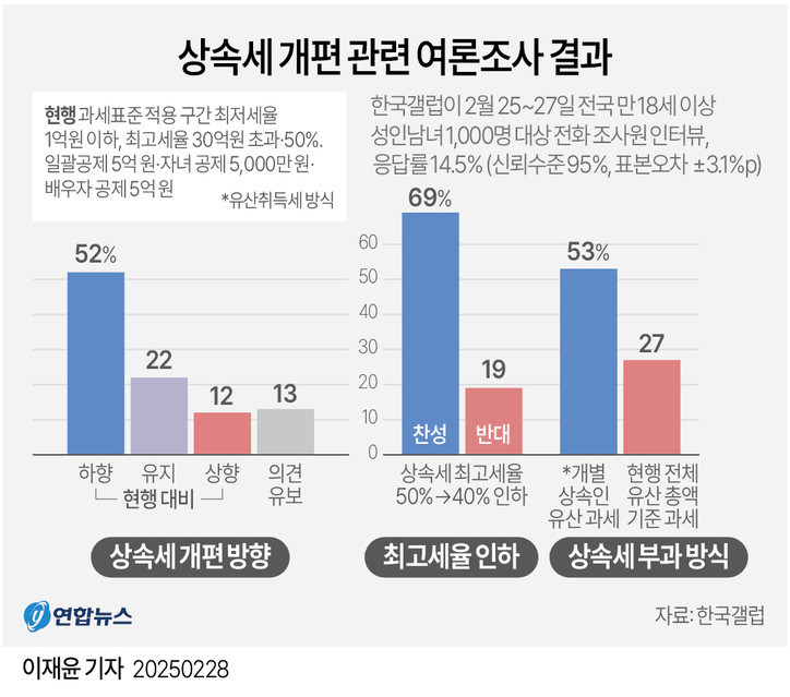 이와 별도로, 올해 3월에는 현행 '유산세'에서 '유산취득세'로 전환하는 전면적인 상속세 개편 방안을 내놓기도 했다.