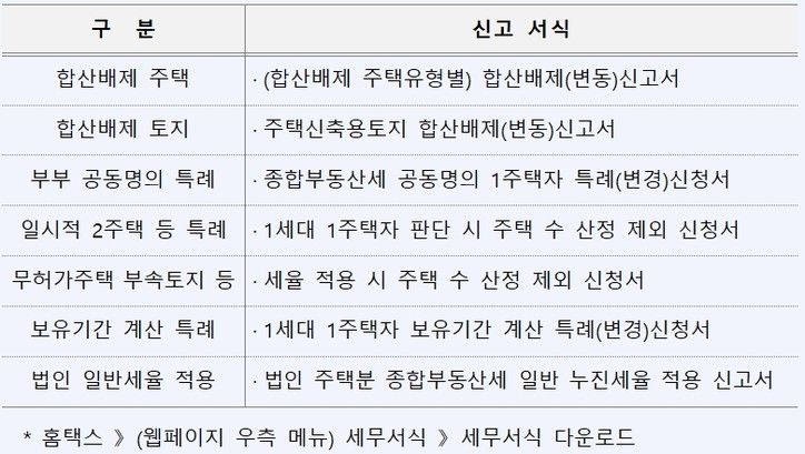 □ 1세대 1주택자 특례가 적용되는 일시적 2주택, 상속주택, 지방 저가주택은 과세표준에 합산하여 세액을 계산하므로 종합부동산세가 과세됩니다.