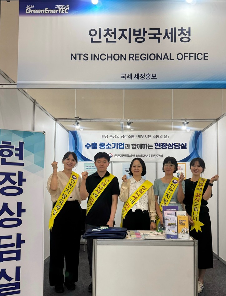 인천지방국세청(청장 김국현)은 오늘(17일)부터 19일까지 3일간 열리는 인천 송도컨벤시아 ‘2025 그린에너텍’ 박람회에서 참가기업 및 내방인을 대상으로 현장소통을 진행한다고 밝혔다.