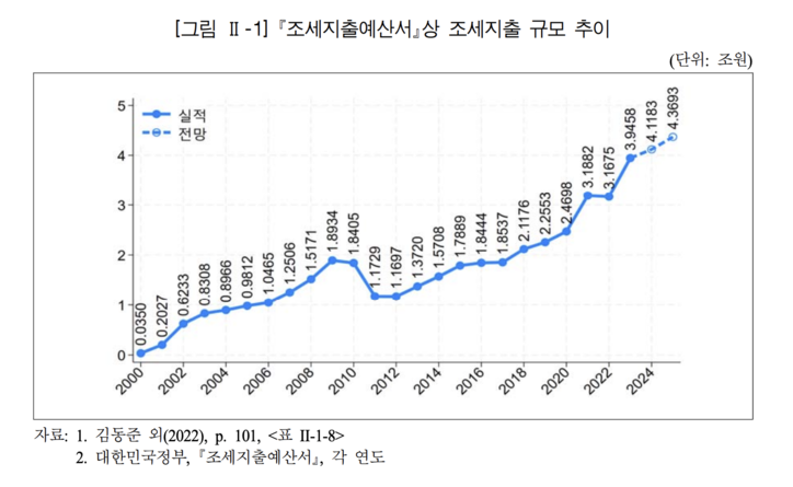 첫 조세지출규모는 `00년 350억원(441만명)이었으나, 가장 최근인 `23년 조세지출 규모는 3조9458억원(1261만명)으로 4조원에 이르렀다. `24~`25년도에도 조세지출규모는 계속 증가해 4조원을 넘을 것으로 전망된다.