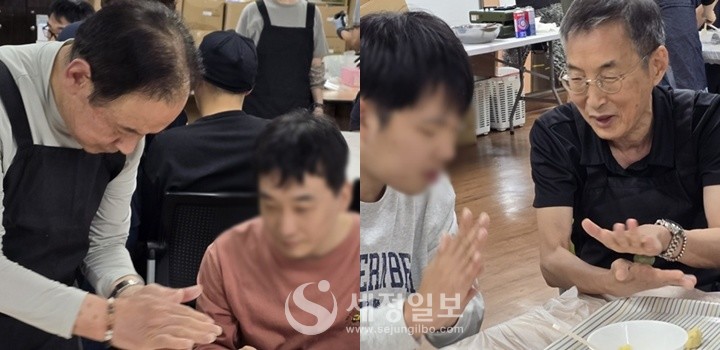 한국세무사불자회 회장단과 김완일 전 서울회장, 김종욱 고문이 함께 참여하여 장애인들을 돕고 금일봉을 전달했다.