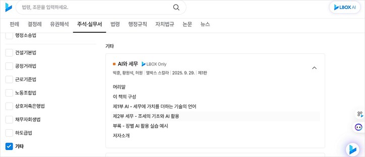 제2부는 세무 분야에서의 AI 활용 사례와 가능성을 구체적으로 제시하며 △조세의 기초 △AI와 입법 △AI와 행정 △AI와 사법 △AI와 세법 연구 △AI와 세무 실무를 다룬다. 또한 부록에는 장별 AI 활용 실습 예시가 포함돼 독자들이 실제 연구와 실무에 직접 적용할 수 있도록 구성됐다.