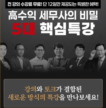 세무사 대상 실전 교육과 전문 협업을 지속하고 있는 기업의별은 전국 세무사를 대상으로 한 무료 온라인 특강, ‘高수익 세무사의 비밀 5대 핵심 무료 특강’을 내달 10일까지 진행한다고 31일 밝혔다.