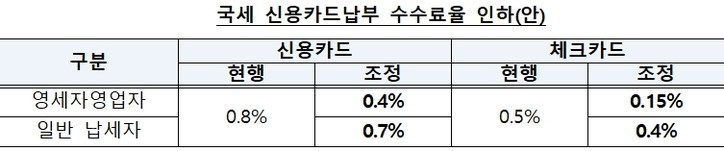 임광현 청장은 취임 후 곧바로 소상공인연합회와 만나 국세 신용카드 납부 수수료 인하를 약속했다. 납세자가 카드로 세금을 낼 경우 부과되는 수수료율을 0.8%에서 0.7%로 인하하고, 특히 영세자영업자의 부가가치세와 종합소득세 납부 시에는 0.8%에서 0.4%로 절반을 축소한다.