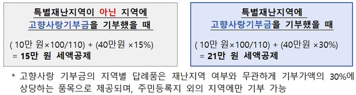 원하는 지역에 기부도 하고, 답례품이랑 연말정산 환급도 모두 다 챙기고 싶다! (기부금액 50만 원을 가정)