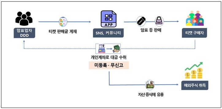 암표 외 다양한 물품을 SNS 등을 통해 온라인 판매하고 수익은 무신고 한 암표업자