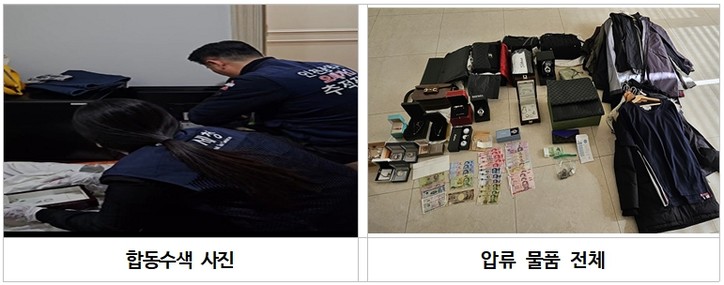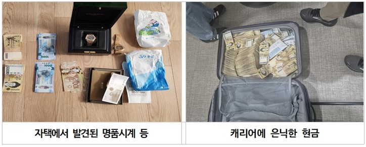 ○ 2차례 합동수색으로 캐리어 가방 속 현금 4억원, 고가시계 2점 등 총 5억원 상당 압류함
