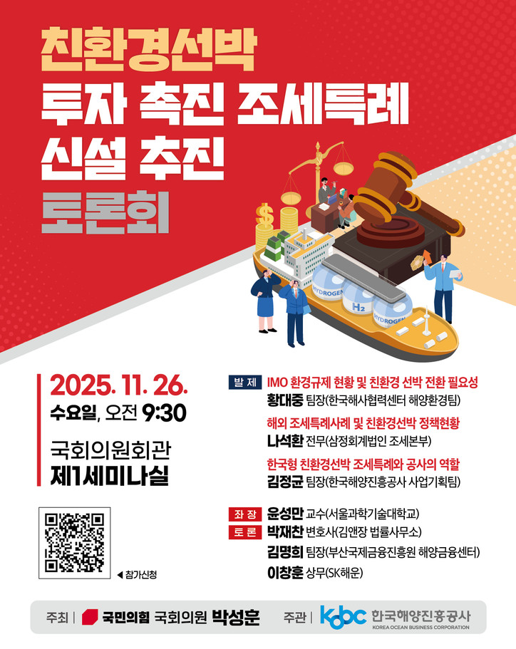 박성훈 의원은 “글로벌 환경 규제가 강화되는 상황에서 친환경 선박 전환은 더 이상 미룰 수 없는 과제”라며 “초기 투자 부담을 줄여 주는 조세특례가 마련돼야 민간도 적극적으로 참여할 수 있다”고 강조했다.