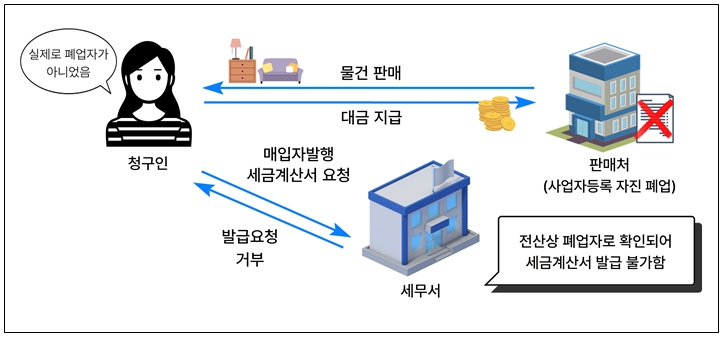 ○(세무서)청구인이 물건을 구입했다고 한 판매자가 사업자가 아닌 폐업자라는 이유로 세금계산서 발급 요청을 거부